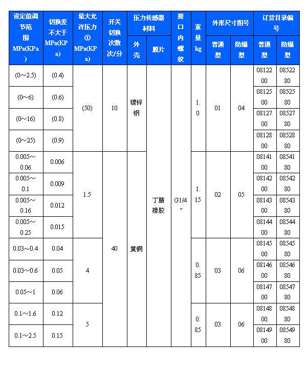 500/7D防爆壓力開關采用膜片式傳感器,可用于空氣等中性氣體和水、液壓油、潤滑油、輕燃油等液體介質。500/7D防爆壓力開關的設定值可調,調節(jié)范圍0~2.5MPa。